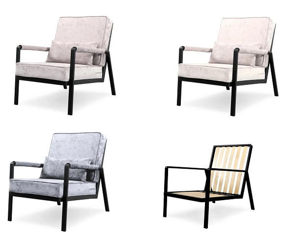 Уютное и мягкое кресло в современном стиле на металлокаркасе.