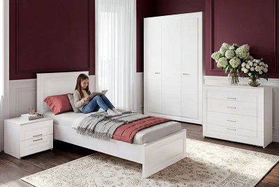 Спальня "Гавана" - имитация рамочного фасада и опоры массив берёзы придают лёгкость модулям.