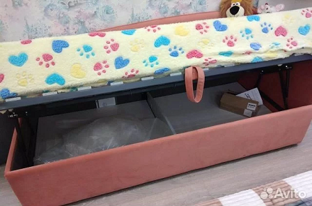 Кровать с подъёмным механизмом (внутри короб для хранения вещей). Изготовлена в красивом кораловом цвете. Ткань "Севен" очень качественный велюр из микрофибрового волокна. Спальное место 800х1800 мм